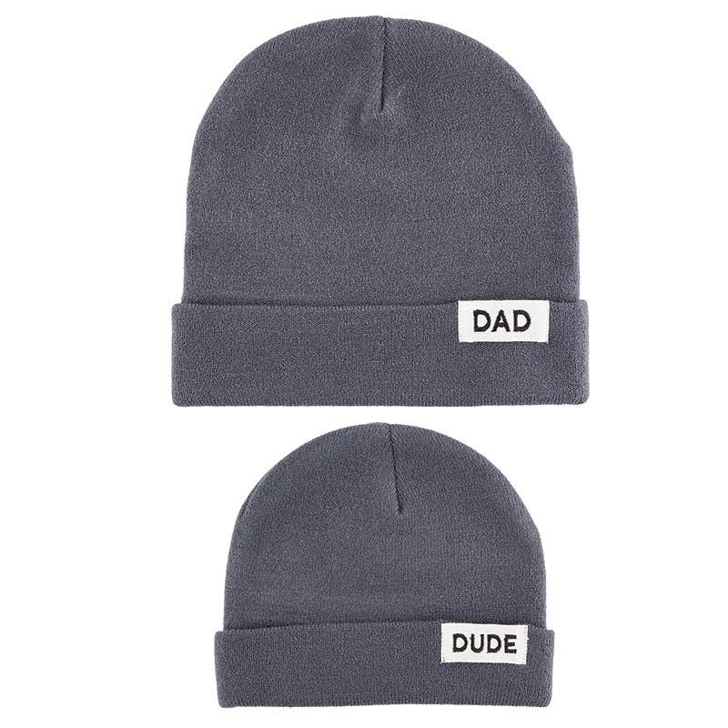 - This hat set features matching grey knit beanies with a darling embroidered tab
