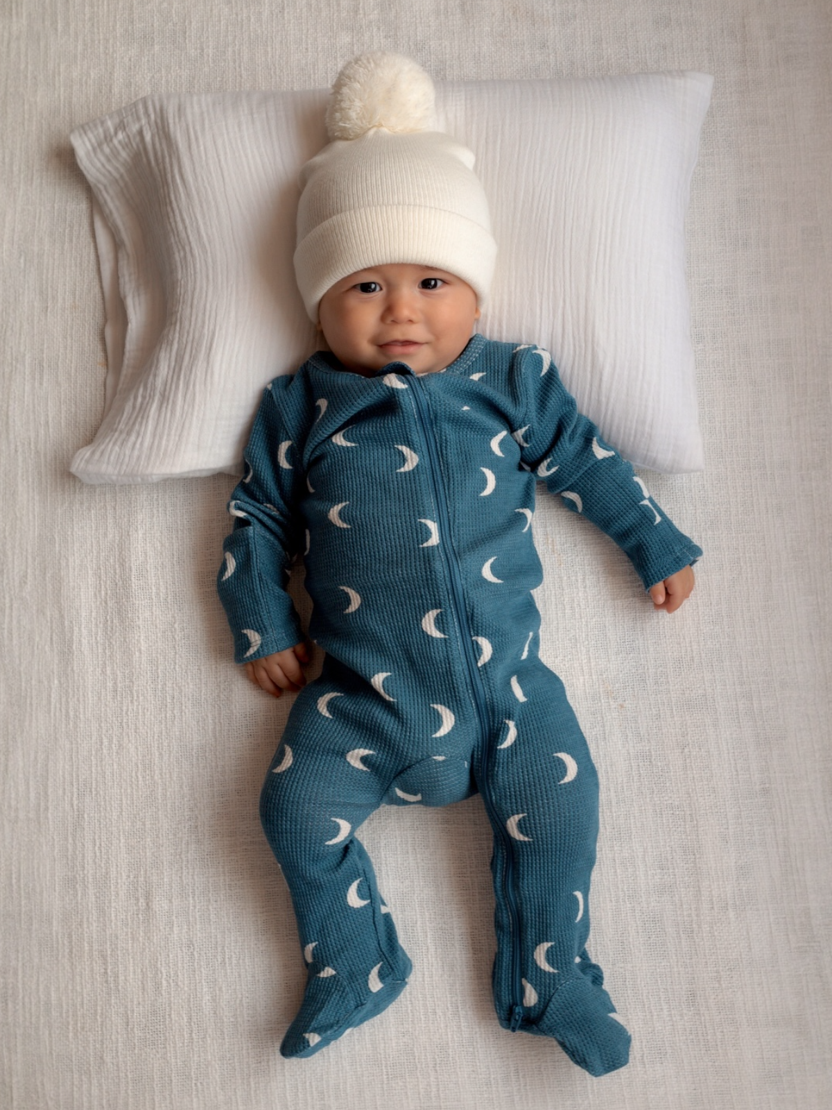 Organic Waffle 2-Way Zip Footie, Midnight Moon