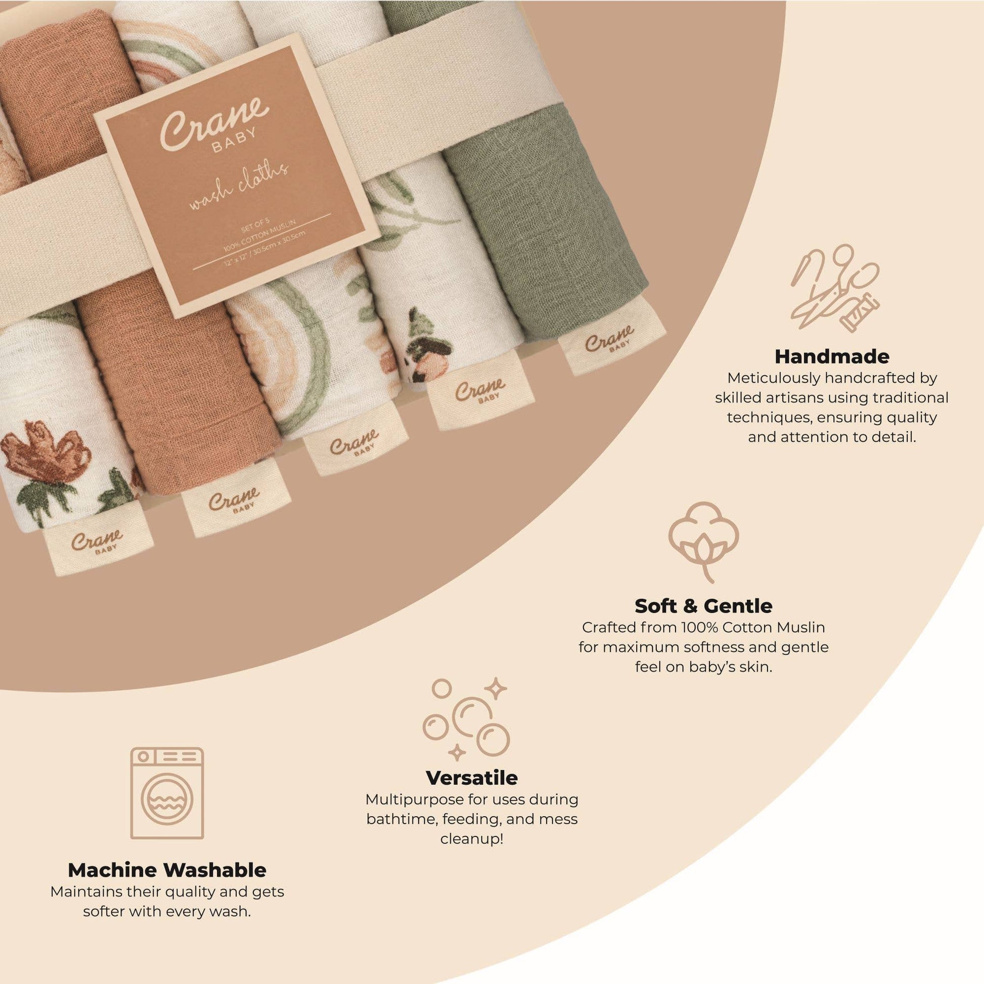 Introducing the Parker 5-pc. Baby Wash Cloth Set in Pink Floral print, a must-have for every newborn's bath time routine. These washcloths are made from soft, premium muslin cotton, providing gentle care for your baby's delicate skin. These washcloths are durable, absorbent, and easy to clean, making them an essential addition to your baby care collection.